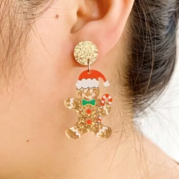 Glitter Gingerbread Man Drop Earrings