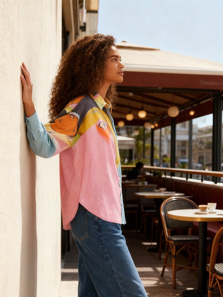 A top that blends contemporary art with wearable fashionbold, creative, and effortlessly eye-catching.