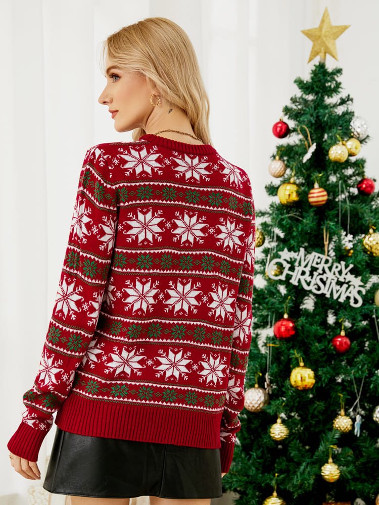 Get into the holiday spirit with our Christmas Casual Snowflake Embroidered Knit Sweater. Featuring delicate snowflake embroidery, this cozy knit sweater adds a touch of festive elegance to your wardrobe. Crafted from soft, warm fabric, it ensures comfort and style for holiday gatherings, casual outings, or relaxing at home. The relaxed fit and classic crew neck make it easy to pair with jeans for a laid-back look or with a skirt for a more polished holiday outfit. Enjoy effortless holiday charm and cozy warmth with every wear.