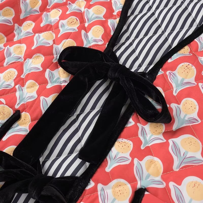 This Cute Floral Print Bow Lace-Up Jacket features a charming bowknot design and a striped lining. adding a unique touch to your outfits. The lightweight padding makes it perfect for transitional seasons. Wear it as a statement piece for any occasion. from casual to formal events.