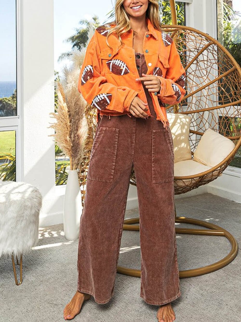 The jacket features a comfortable fit, ensuring both style and ease of movement. Its versatility makes it suitable for a range of occasions, from casual gatherings to more sophisticated events. With the Game Day Rugby Sequined Single-Breasted Jacket, you’ll effortlessly make a fashion statement that’s uniquely you.