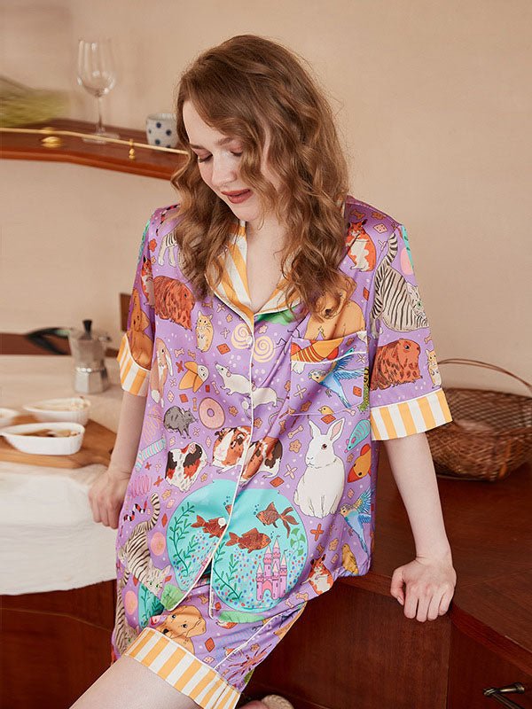 Add a splash of fun to your sleepwear with the Guinea Pig and Fish Shorts Pajama Set! This playful set features a charming print of guinea pigs and little fish, creating a whimsical, unexpected combo thats perfect for animal lovers and those with a quirky sense of style. Crafted from a soft, breathable fabric, this set keeps you cool and comfy for restful nights or laid-back days.