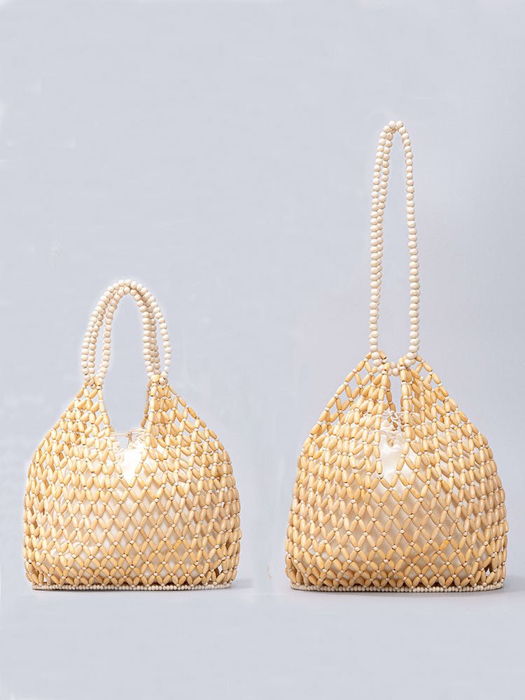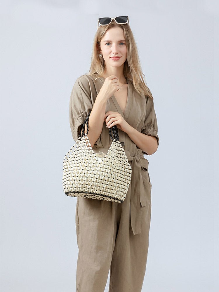 Handcrafted Wooden Bead Woven Tote Bag