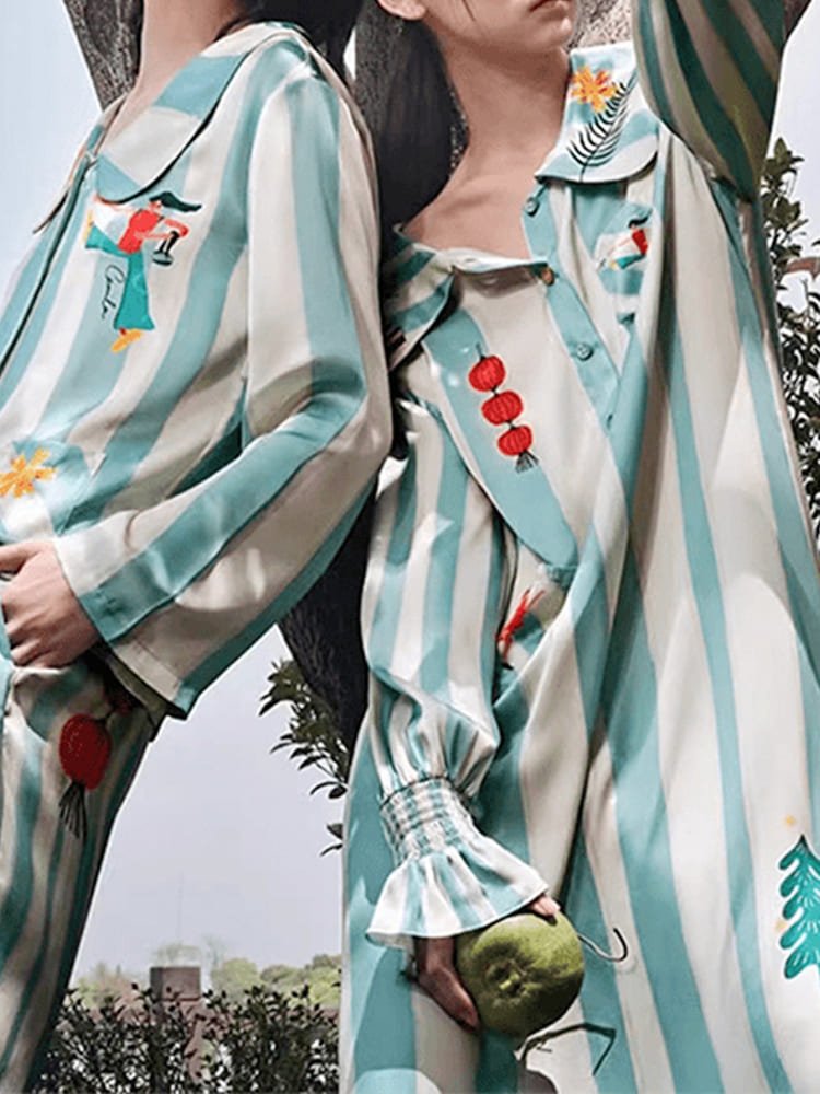 Homewear – Printed Ice Silk Long Sleeve Pajama Set