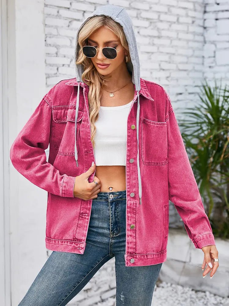 This retro-inspired denim jacket features a washed finish and a detachable hood, offering a versatile and stylish layering option. Perfect for casual ensembles with a touch of vintage charm.