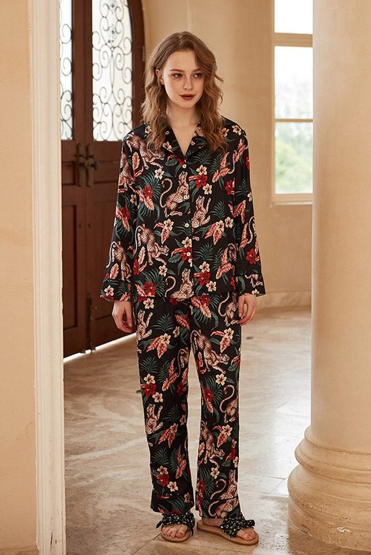 Jaguar and Floral Print Long-Sleeve Loungewear Set