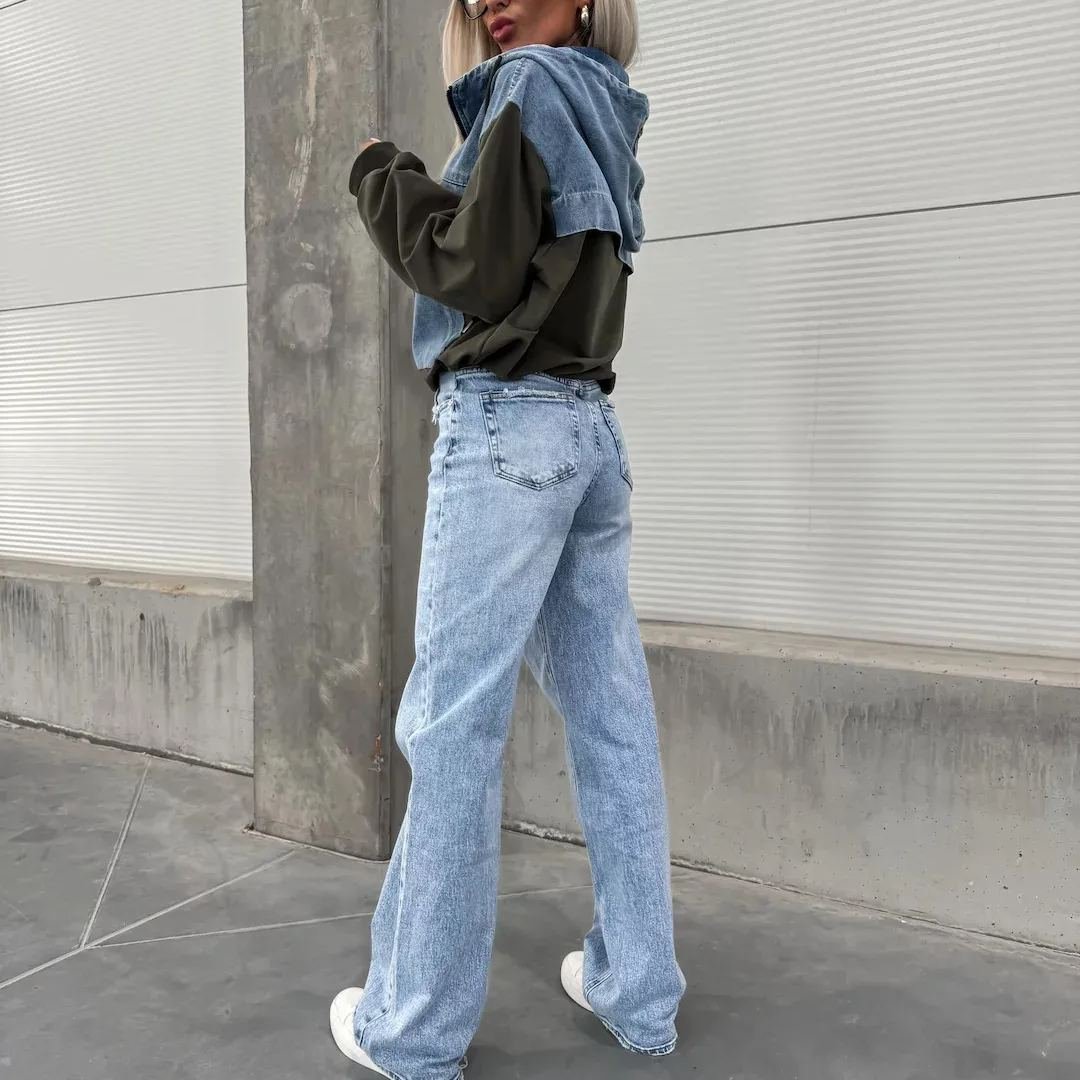 Introducing Loose Casual Wash Denim Patchwork Hoodie from BoiiLife. the patchwork fabric design provides a sense of fashion. Soft washed denim fabric for comfort and style. The collar zipper can adjust the size of the collar. and the hat has a drawstring. Large denim pockets on the front provide convenience. achieving a combination of style and comfort. It’s worth adding to your fall/winter wardrobe!