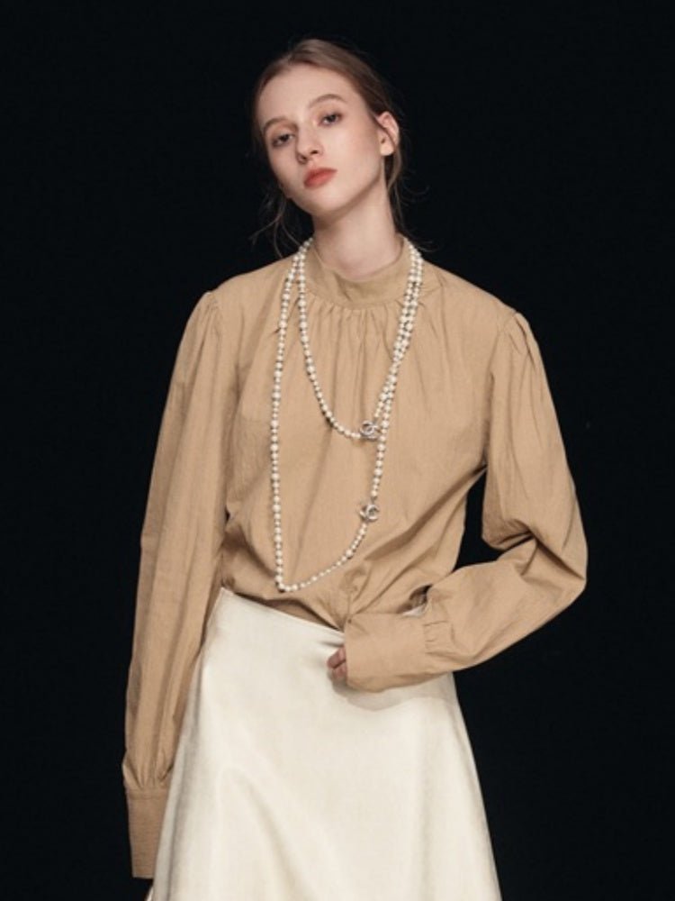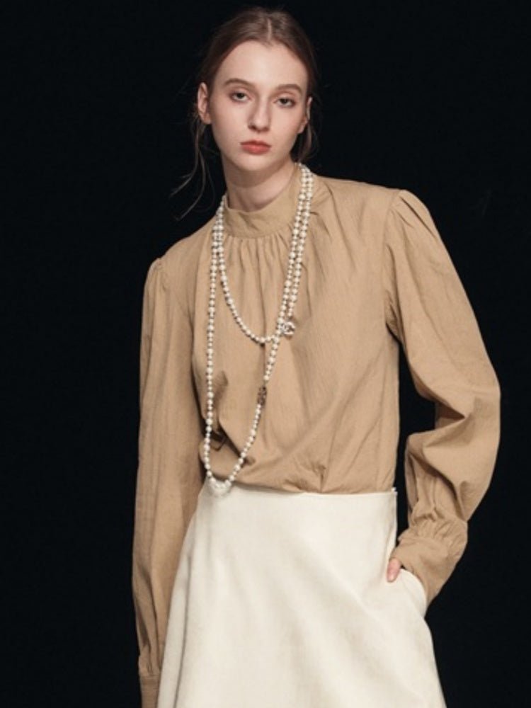 Mock Neck Puff Sleeve Blouse