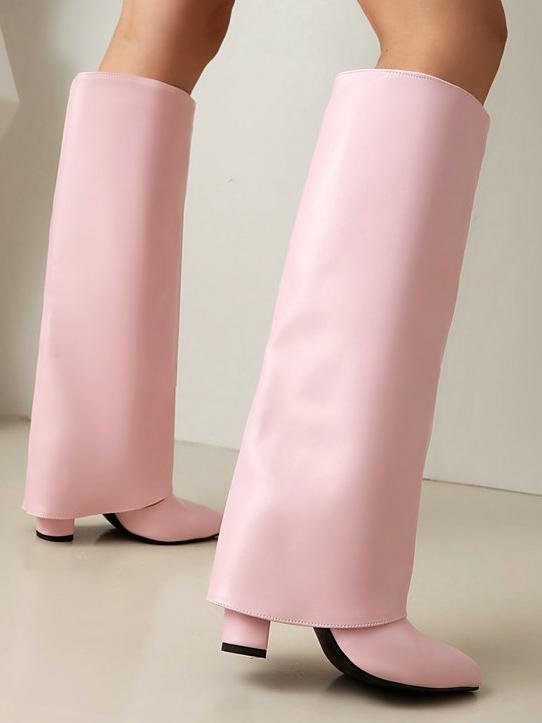 These pointed-toe chunky heel over-the-knee cowboy boots combine Western style with modern fashion. The long shaft and fitted design highlight your leg shape, making them a standout piece for fall and winter. Perfect for pairing with both jeans and skirts, these boots bring a unique flair to any outfit, adding bold elegance and charm.