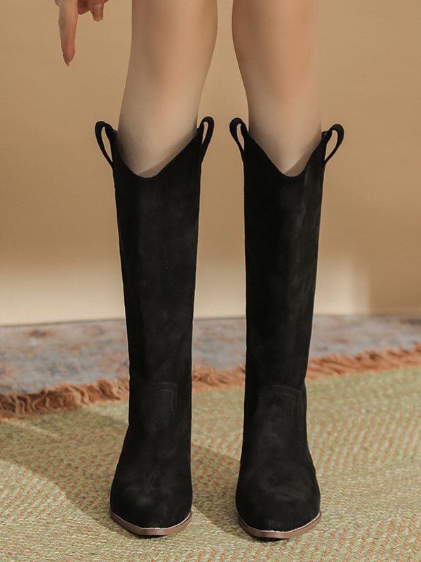 Pointed Toe Thick Heel Stacked Boots Retro High Top Knight Boots