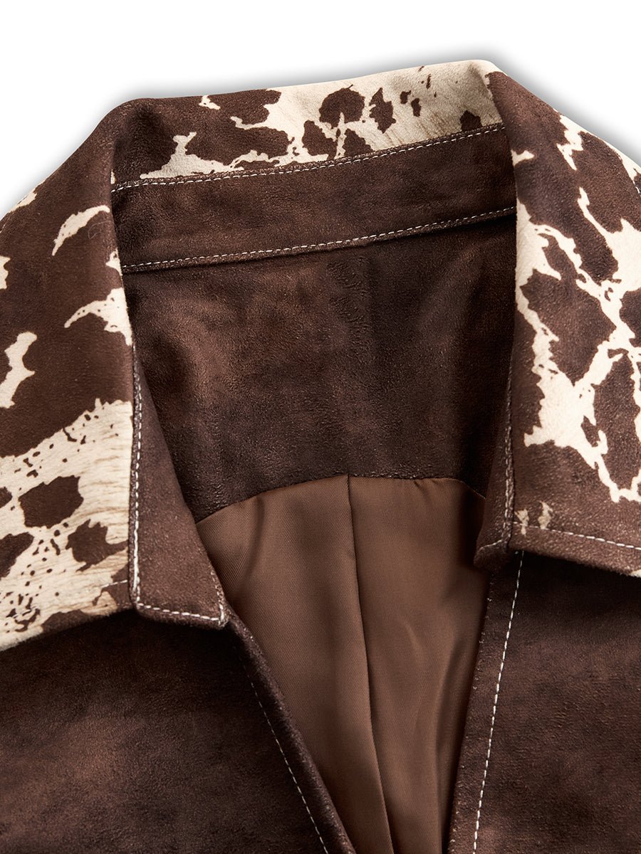 Retro Cow Print Suede Single-breasted Slim-fit Vest