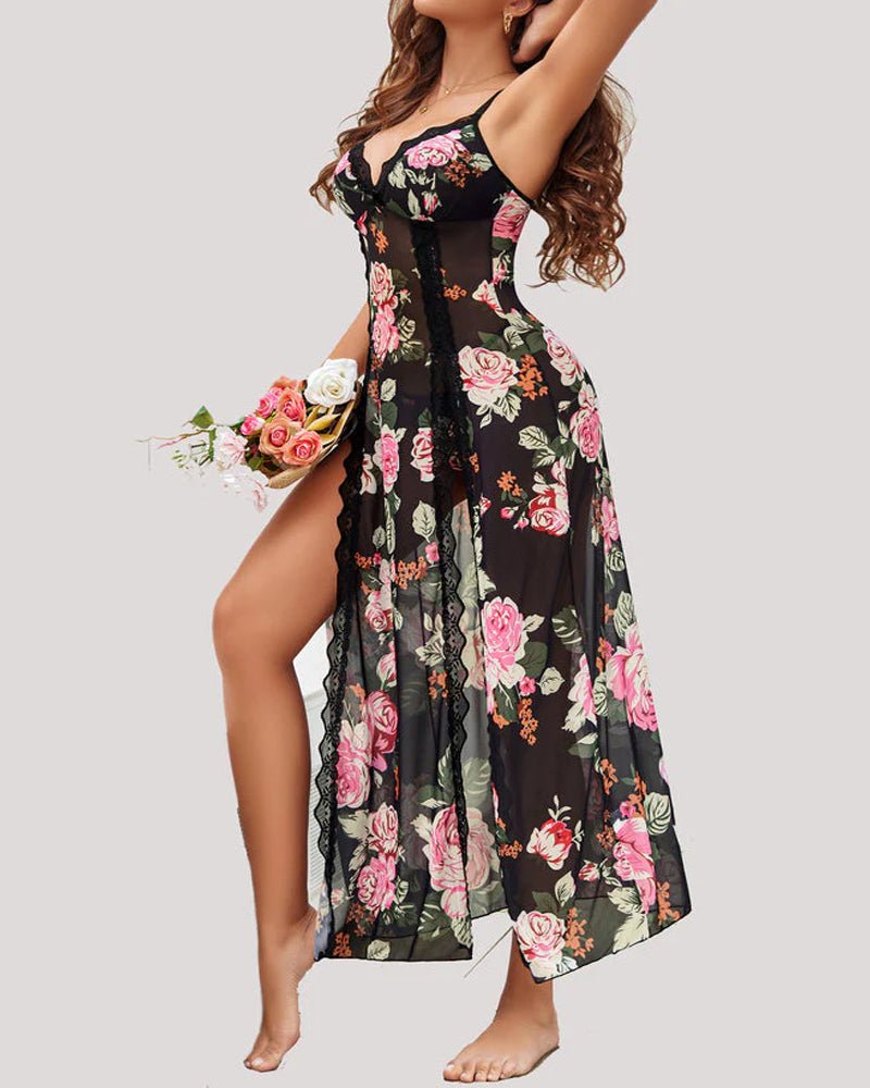 SKU: 9367701029112-sexy-suspenders-see-through-lace-mesh-long-slits-with-panties-pajamas-set Category:  Tag: