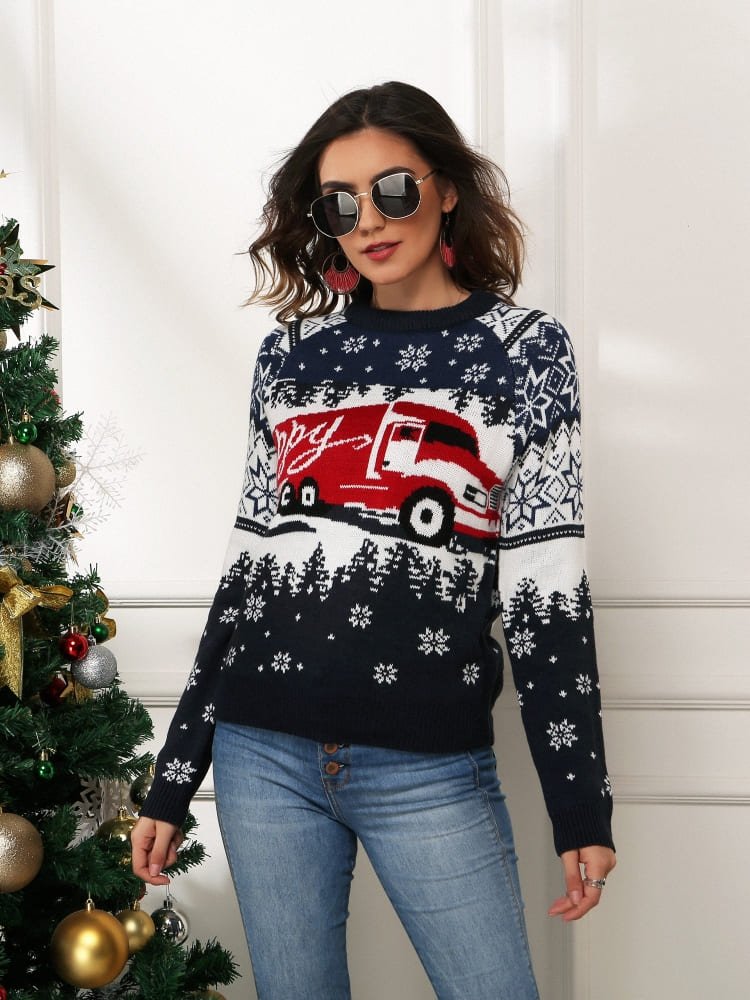 Snowflake and Truck Print Christmas Sweater