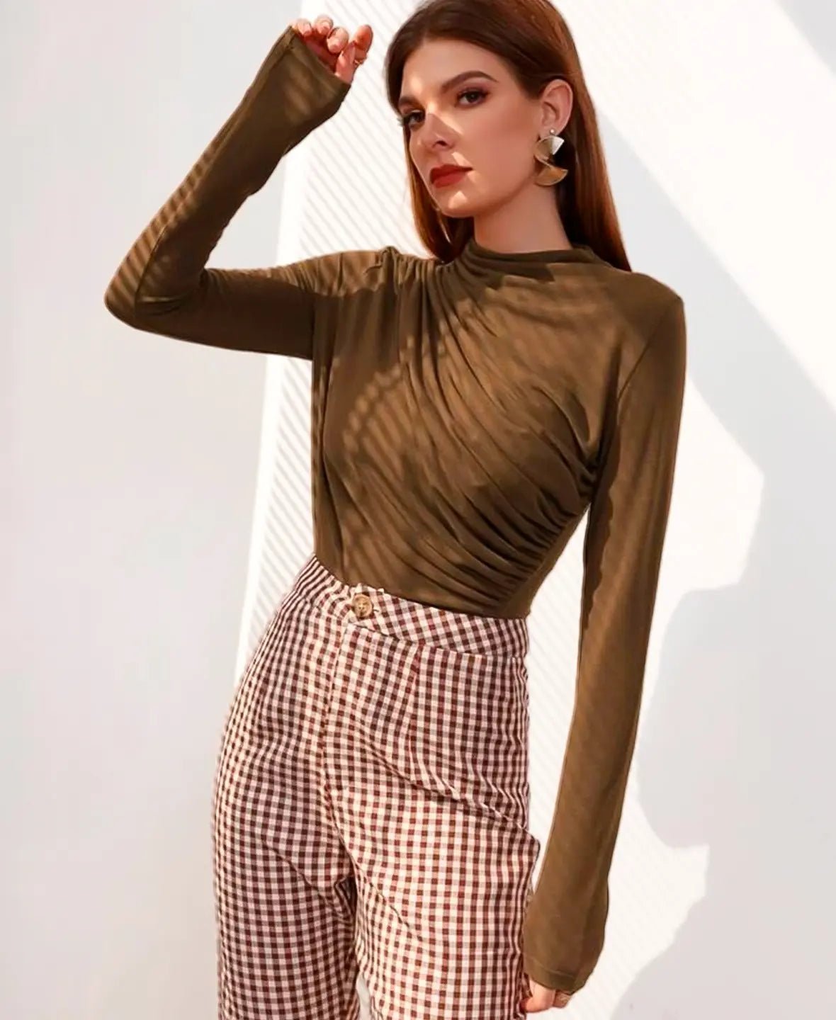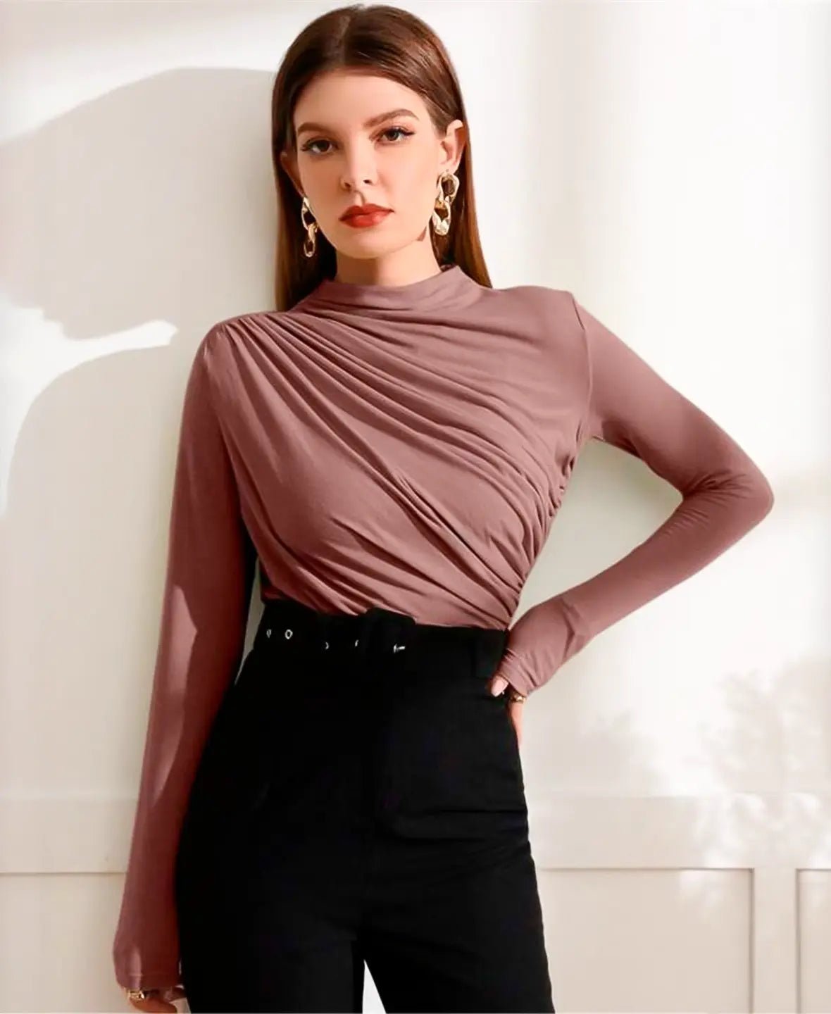 The draped silhouette of this top creates a flattering, graceful look that works for every body type. The soft fabric moves with you, adding an element of fluidity that makes it perfect for both casual days and dressier occasions.