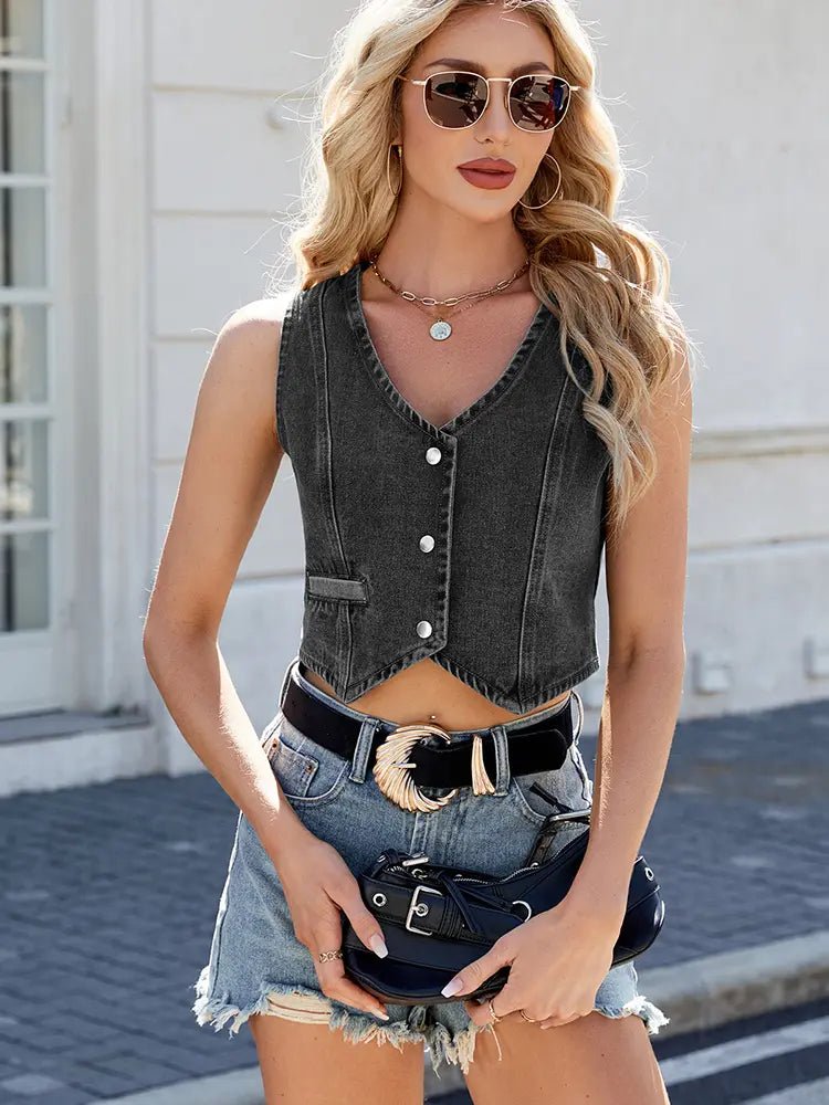 This stylish denim tank top offers a bold, chic vibe with its figure-flattering design. Crafted from soft, breathable denim, it’s perfect for the warmer seasons. The sleeveless, cropped cut adds a youthful, edgy appeal, making it a must-have for fashion-forward looks.
