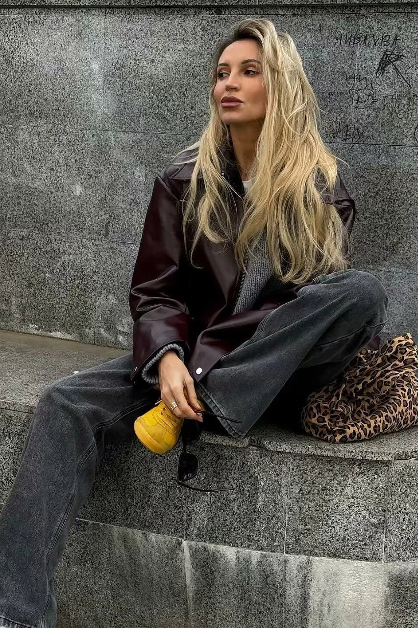 aOwn your look with the Stylish Lapel Leather Biker Jacket awhere edge meets elegance.