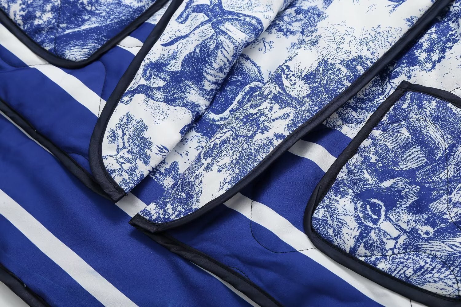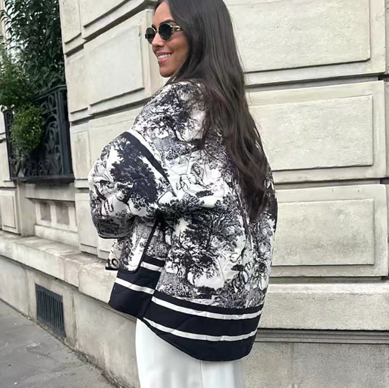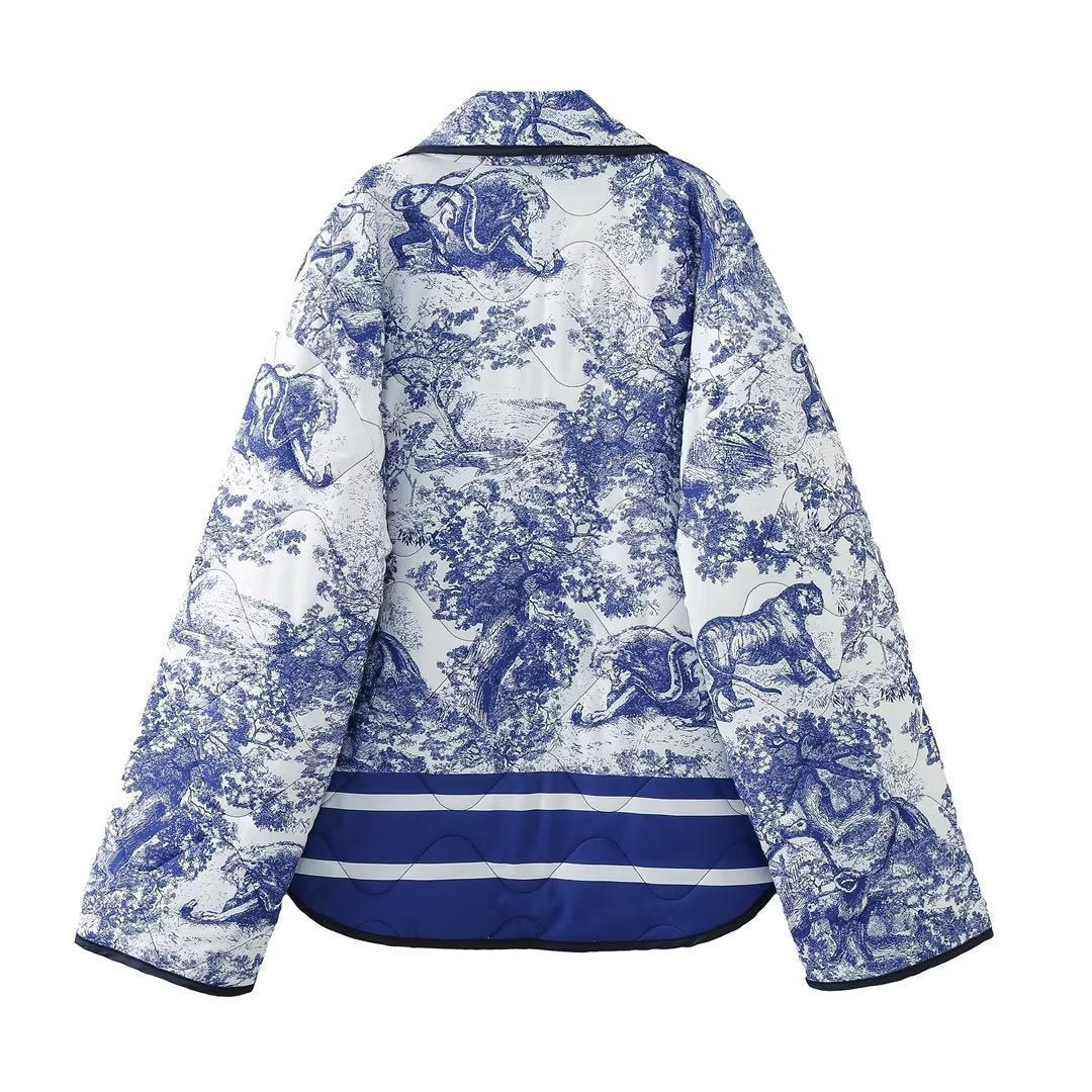 Vintage Ink Painting Print Quilted Oversized Jacket