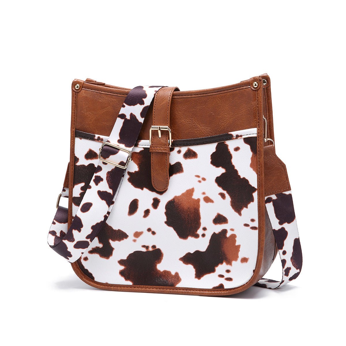 Western Cowboy Style Brown Cow Print Crossbody Bag