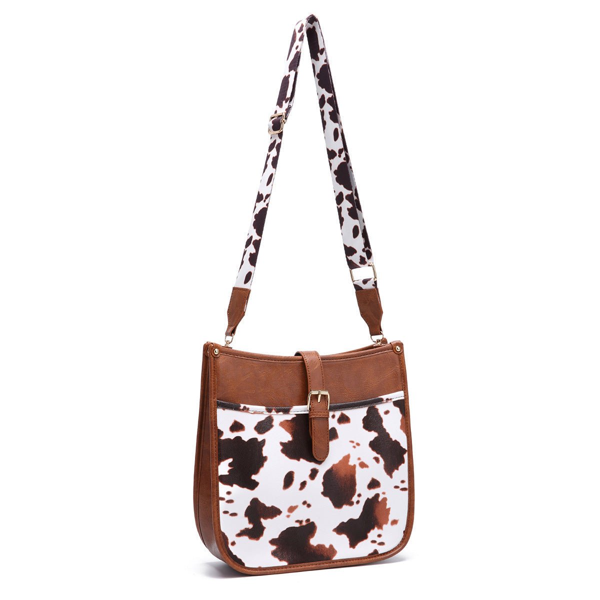 Brown Cow Print Crossbody Bag full of western cowboy style. add western cowboy style to your outfit. Suitable for daily back. fine details. light not bulky. very comfortable back. Pair it with leather boots or a cowboy hat for an easy western cowboy look. The bag has a large capacity. with compartments and adjustable shoulder straps.