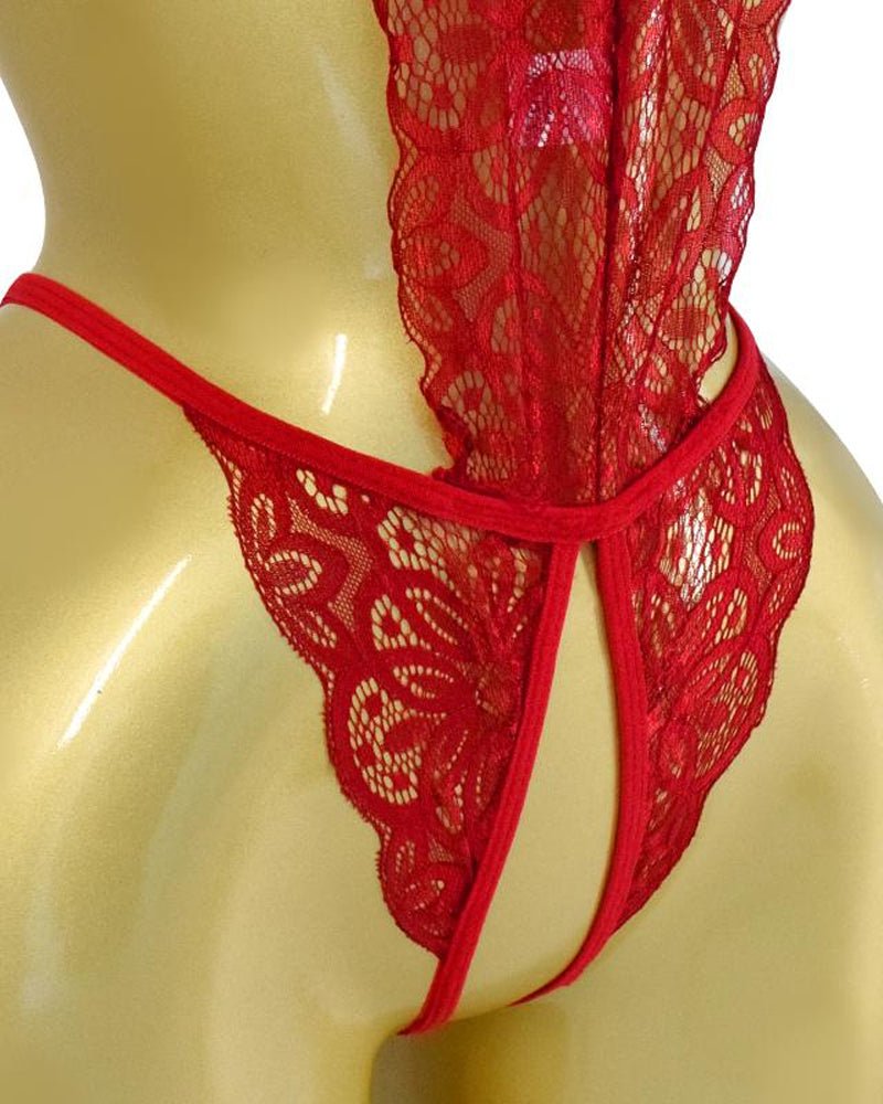 Women’s Sexy Hollow Translucent Floral Lace Backless One-Piece Pajamas