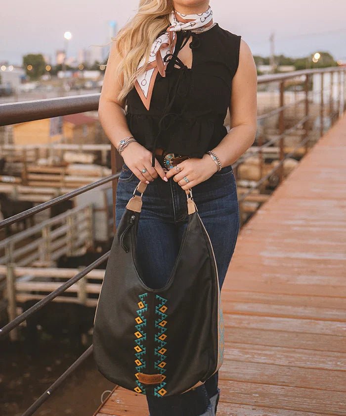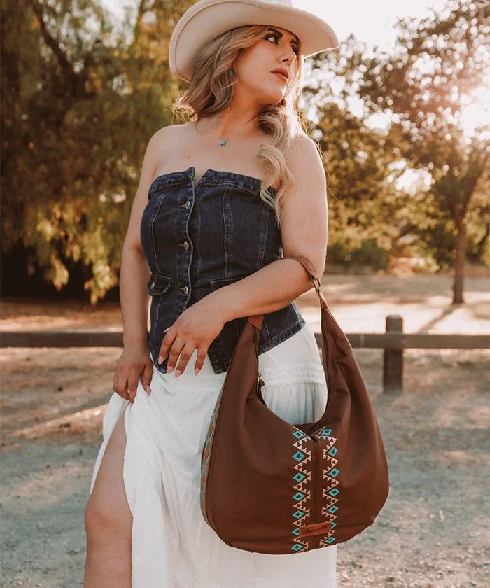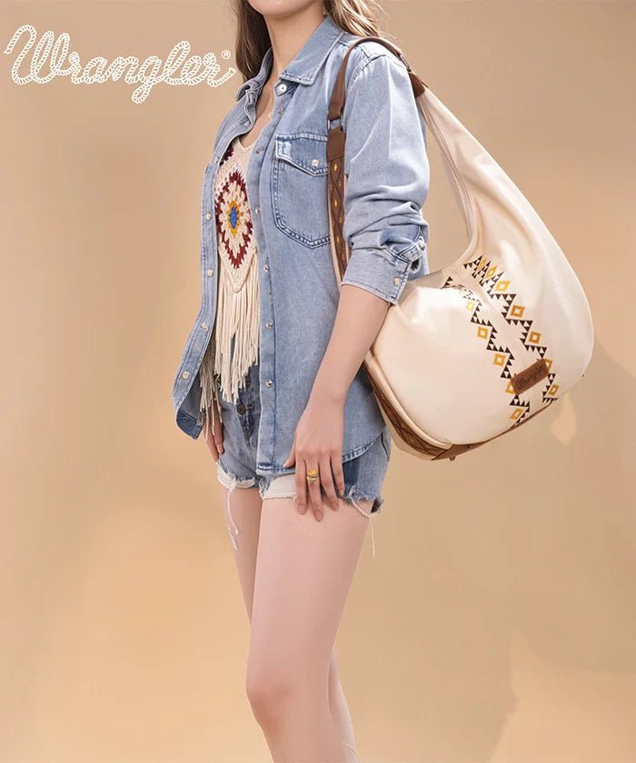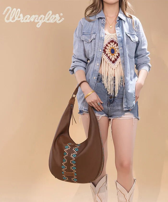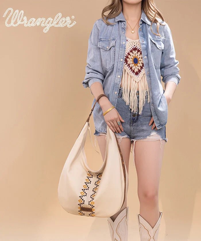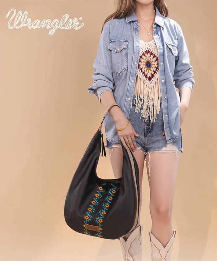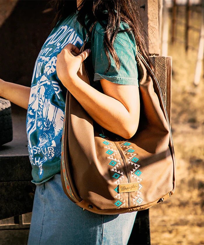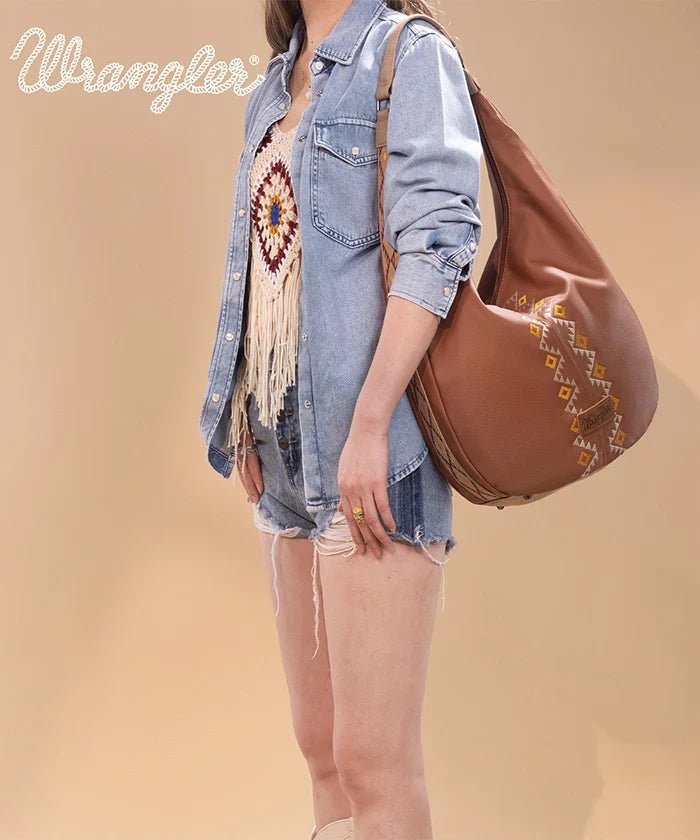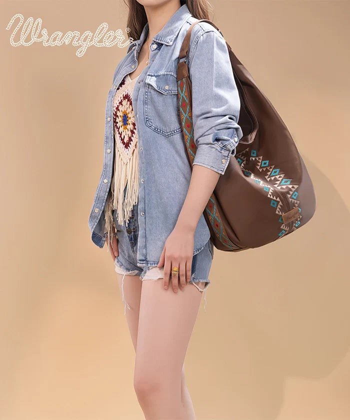 Wrangler Aztec Embroidered Wide Hobo Bag
