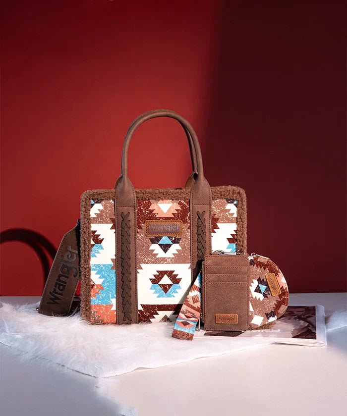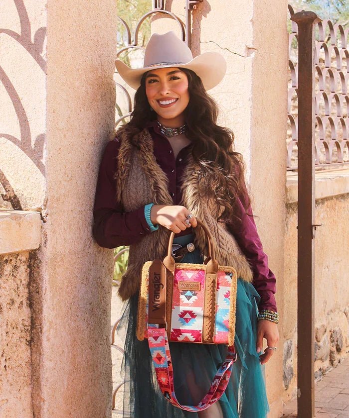 Wrangler Aztec Sherpa Trim Crossbody Purse Collection