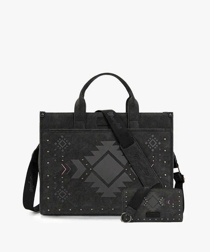 SKU: 8119554539609-wrangler-aztec-studded-tote-bag-collection Category:  Tag: