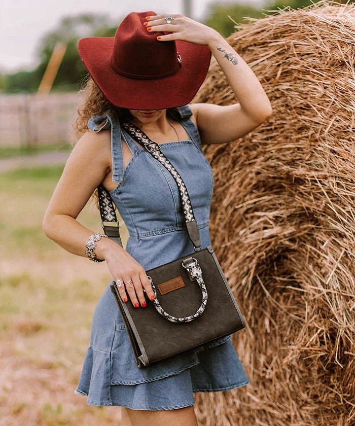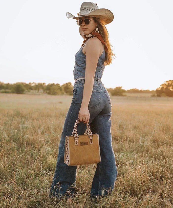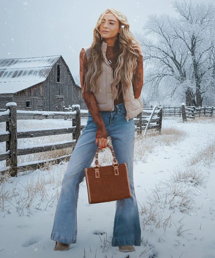 The Wrangler Aztec Tote Bag captures the perfect blend of Western charm and everyday practicality. Crafted from premium vegan leather and durable canvas, this tote bag with Aztec print offers eco-conscious strength built to last.