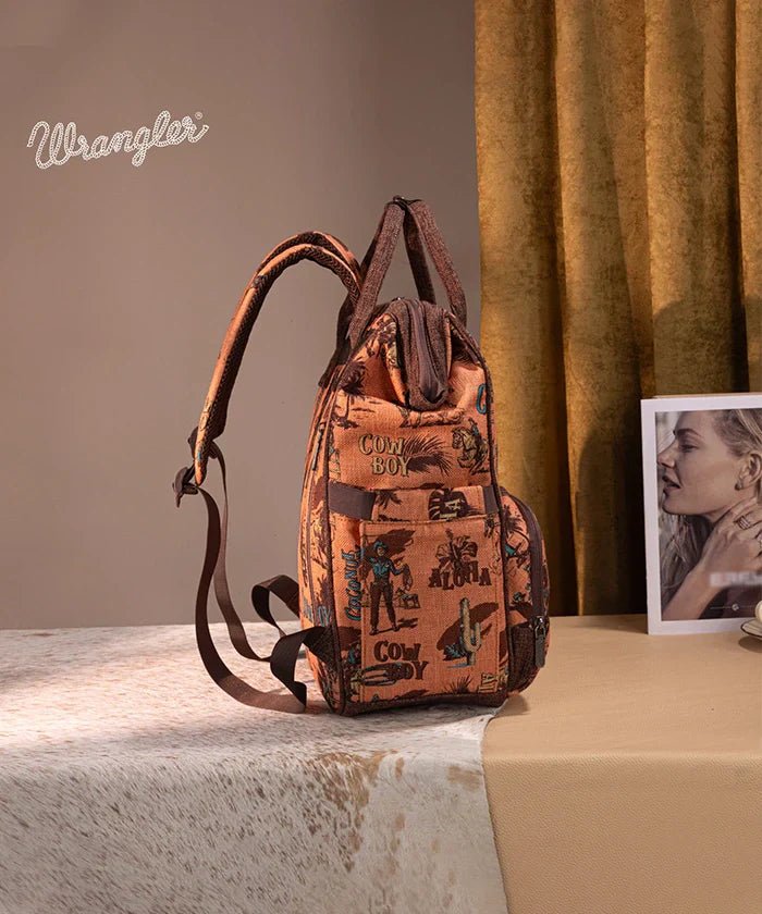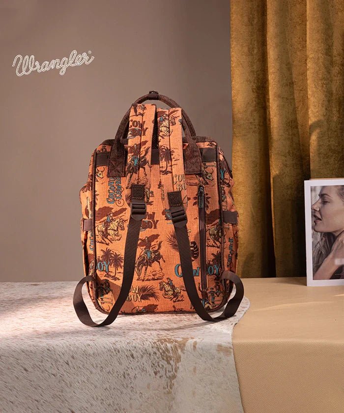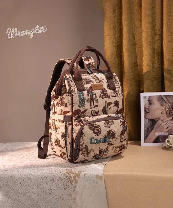 - Adventure-Ready Craftsmanship: Built from durable canvas adorned with cowboy printed patterns and a leather Wrangler logo